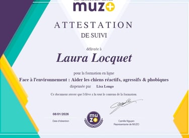 Je suis passionnée par l'éthologie canine, et la psychologie cognitive, vous trouverez ci-dessous mon parcours de formation. Il me tient à cœur de mettre jour mes connaissance.
